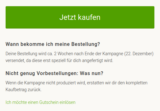 1. Bis zum 22. Dezember 2023 könnt ihr Merch bestellen. Seedshirt sammelt diese Bestellungen.
